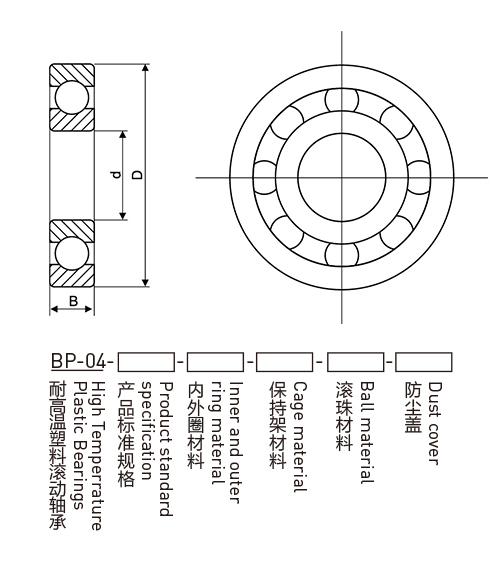 料选用PEEK或PI, 保持架材料为PTFE ,PEEK或PI,滚珠