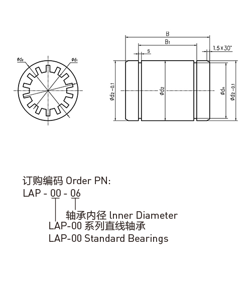 LAP-00 全塑料直线轴承 [ LAP-00 All plastic linear bearings ] SHARE 产品特性 ●高性能材料HPP3制成 ●过盈配合压装 ●卡簧轴向加固 ●标准配合公差E9 ●适用于污垢或灰尘环境 ●使用温度-20℃/+60℃ 标准规格 标准规格查询 LIN-01全塑料直线轴承 LAP-00 全塑料直线轴承,公制尺寸 产品编码: d1 [mm]: d1-最大公差 [mm]: d1-最小公差 [mm]: d2 [mm]: B h10[mm]: B1 H10[mm]: dn H10[mm]: s H10[mm]: 轴-最大公差 [mm]: 轴-最小公差 [mm]: 孔-最大公差 [mm]: 孔-最小公差 [mm]: *订货周期 [wks]: 查询价格 订购产品 结构图片 产品中心 News Navigation 产品中心 工程塑料轴承 纤维缠绕轴承 客户化的定制产品 塑料关节轴承 塑料及陶瓷滚动轴承 塑料直线轴承和直线导轨 丝杠和螺母 直线运动模组 应用领域 电子样本下载 联系我们 产品中心 News Navigation 产品中心 工程塑料轴承 纤维缠绕轴承 客户化的定制产品 塑料关节轴承 塑料及陶瓷滚动轴承 塑料直线轴承和直线导轨 丝杠和螺母 直线运动模组 应用领域 电子样本下载 联系我们